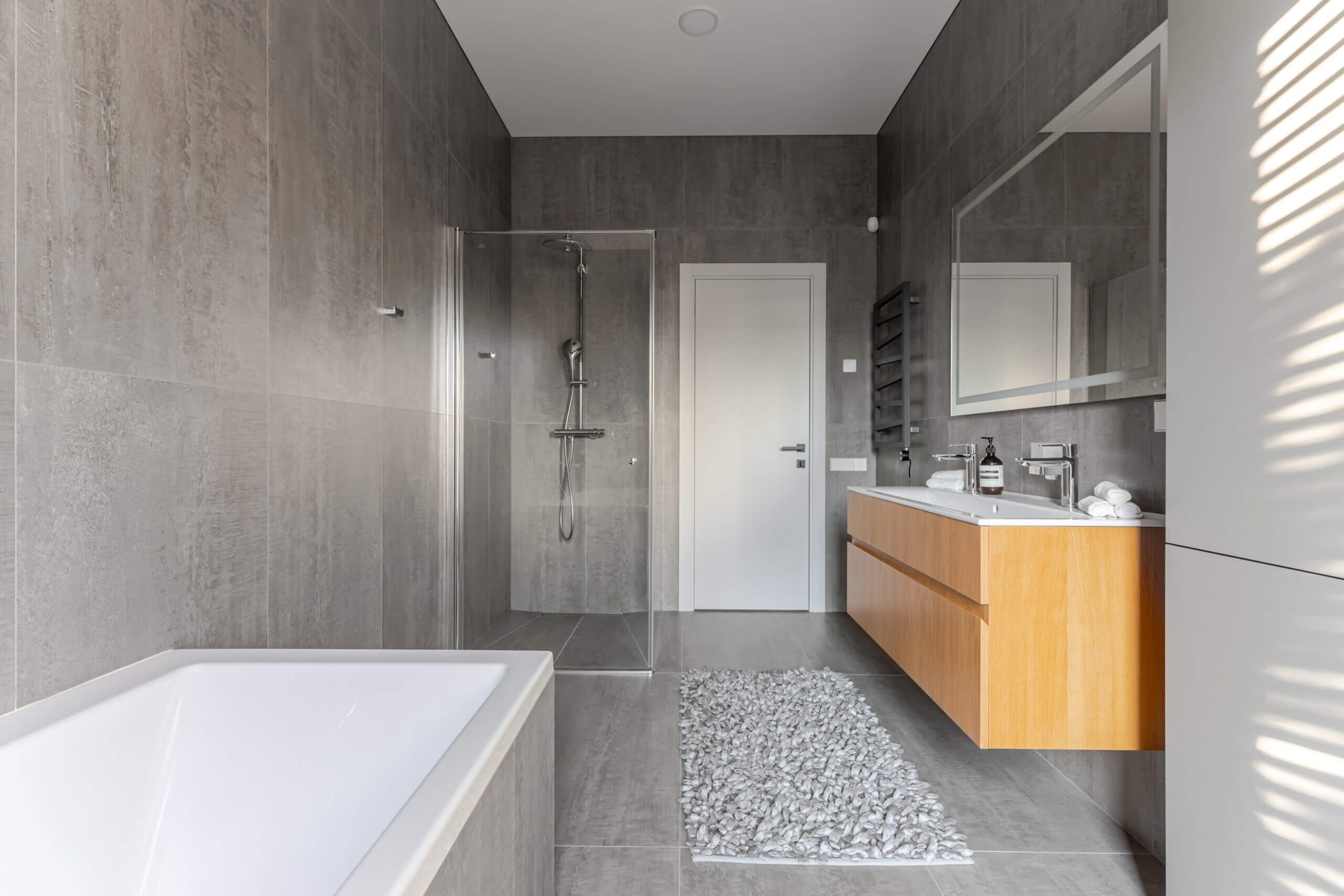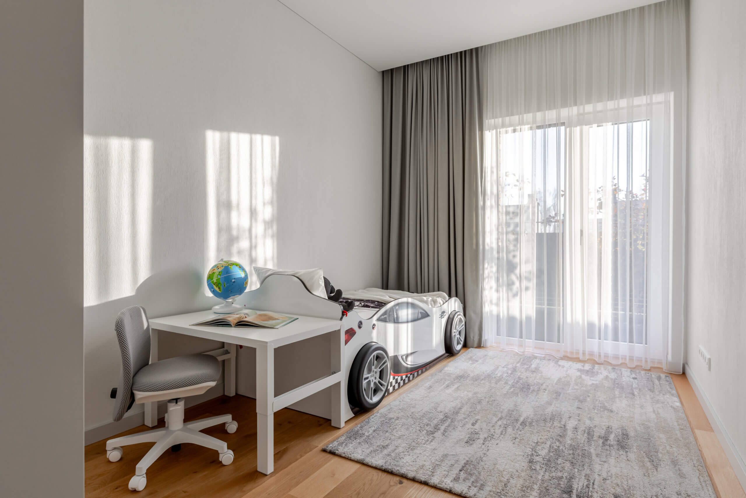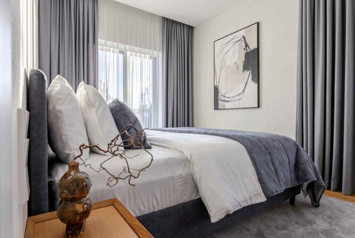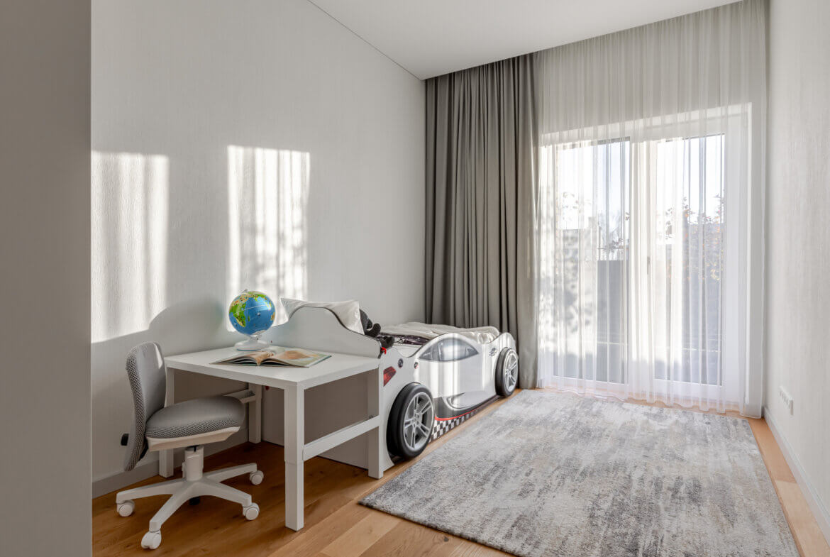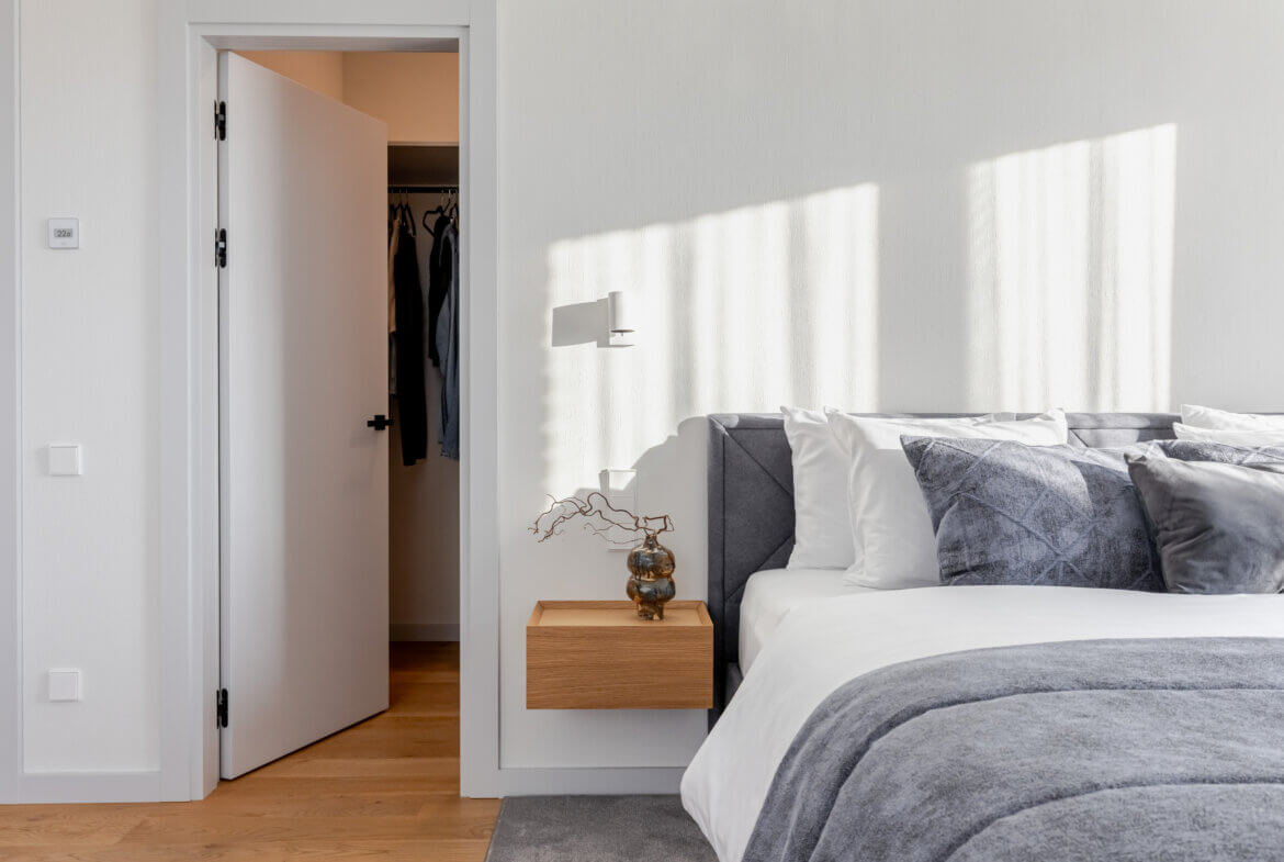 Trys miegamieji sukurti taip, kad kiekvienas turėtų savo ritmą. Pagrindinis miegamasis – poilsio oazė su drabužine ir vaizdu į sodą. Kiti du kambariai gali tapti vaikų erdve, svečių kambariu ar kūrybos vieta – viskas priklauso nuo jūsų gyvenimo poreikių.