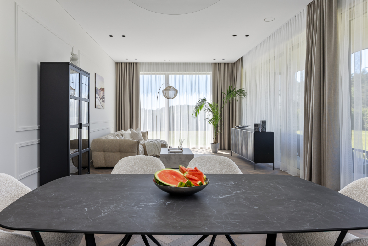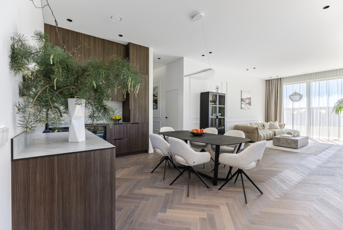 Parduodamas visiškai įrengtas ir dar negyventas vieno aukšto namas prestižiniame „Stirnų giraitės“ projekte – išskirtinėje, uždaroje ir privačioje gyvenvietėje, kurią iš visų pusių supa brandūs Sakiškių miškai. Tai – ypatinga vieta tiems, kurie ieško harmonijos tarp šiuolaikinio komforto ir autentiško ryšio su gamta.
